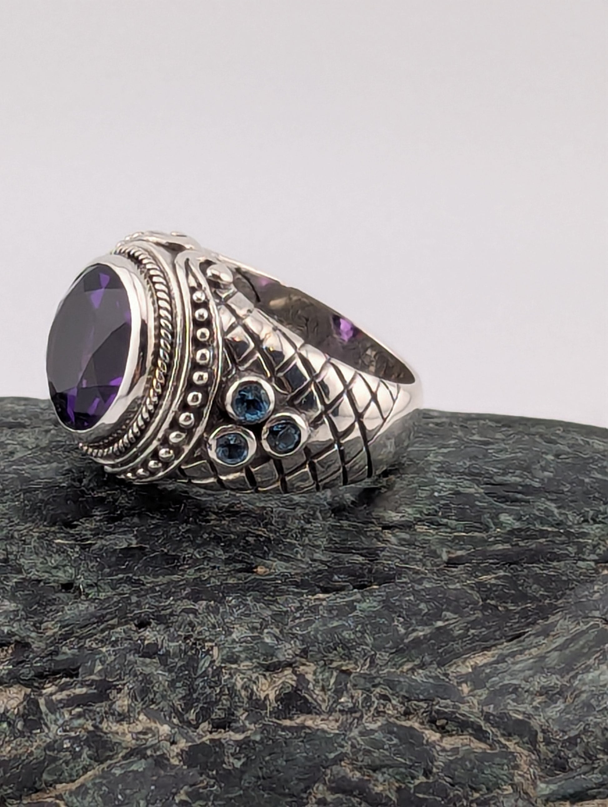 Large Round Amethyst and Blue Topaz Ring